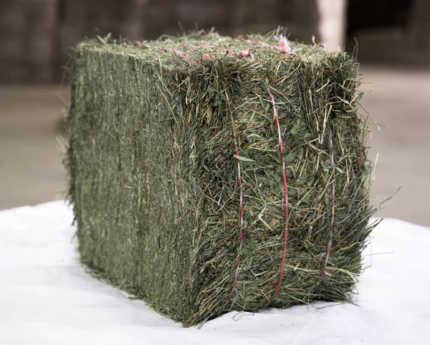 Foin pour les chevaux de course et pour les chevaux de sport ► Facilité de distribution : pour un cheval de 450 kg = 8kg de foin /jour en 2 repas (avec un complément) ou 12kg (100% foin) Mode de distribution : ► Couper les trois ficelles. ► Prendre les tranches et les peser afin de s’habituer à la densité pour doser la ration. ► Distribuer les tranches sans les secouer, les animaux apprécient de le faire eux-mêmes. Stockage : ► Stocker le foin bien au sec. ► Couvrir le foin afin d’éviter la poussière et autres polluants.